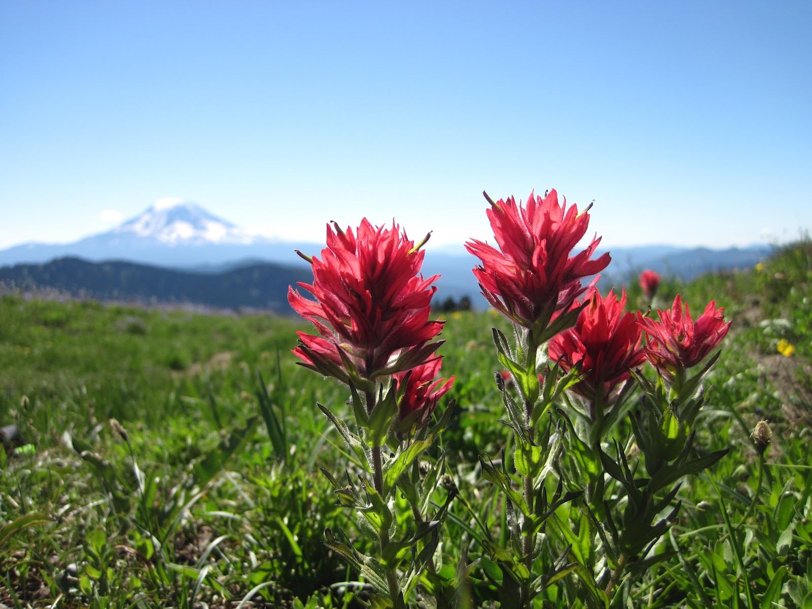 For 2 hours, we hiked in the forest. In the second hour, we gained some good elevation, but we maintained a consistent pace. We came to a trail junction in a more open area, and I needed a snack. A few mosquitoes cut the break short, and we were moving back up the trail. Within 10 minutes and a few switchbacks we hit the real meadow. Lupine, indian paintbrush, mountain asters, and countless other flowers I cannot name covered a meadow that stretched for what felt like miles. The lupine smelled so heavenly. To the south Mt. Adams and Mt. St. Helens were pronounced in the sky. It was insanely beautiful, such beauty that it could pull tears from the eyes. We kept a steady pace up through the meadow. As we climbed, we came around a bit of a ridge, and Mt. Rainier was shining to the north west. It was dazzling as always. We kept moving, giddy from the mountain views and drunk on the essence of the wilderness. Soon enough, I hear a familiar voice say, "it's about time you made it up here." Sitting and taking a break was another friend from work, whom I forgot was going to be camping the entire weekend up in the meadow. We enjoyed some good conversation, then continued on up the trail. We got up were the trail starts to head over to Elk Pass, but Old Snowy was there to our right. It was about 2:30 pm and we said we would turn around at 3. We climbed and hit the summit by 2:40 pm. We sat and enjoyed snacks and incredible views. We began heading down after a good break. The hike down was a consistent, non-stop walk. We were at the car by 6:15pm.